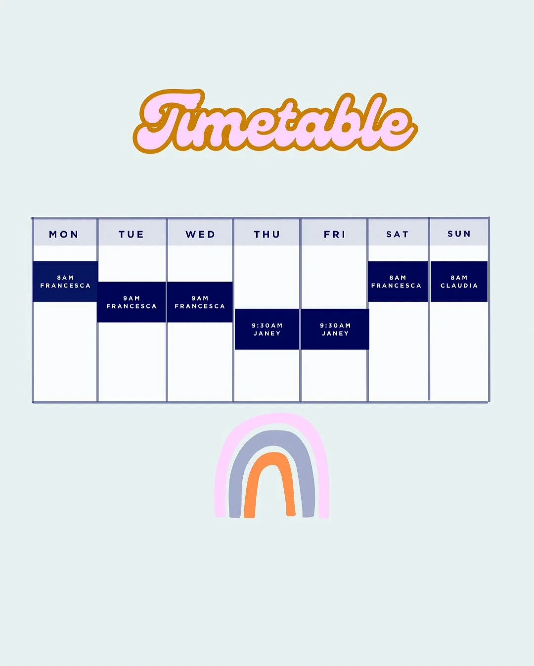 There is one class each day in Noosa Woods